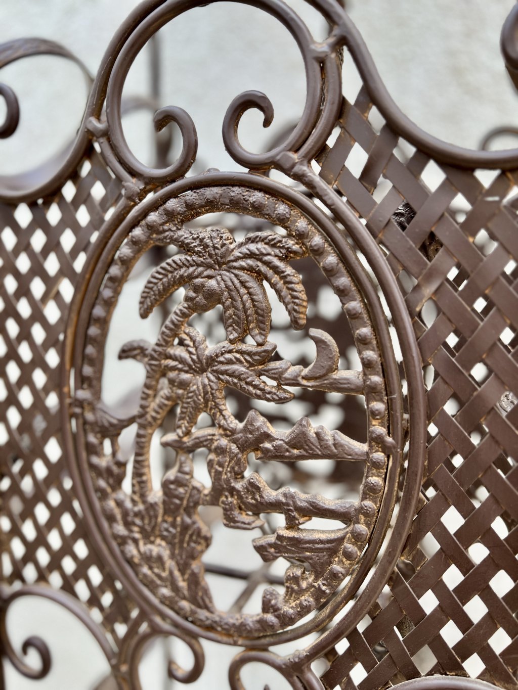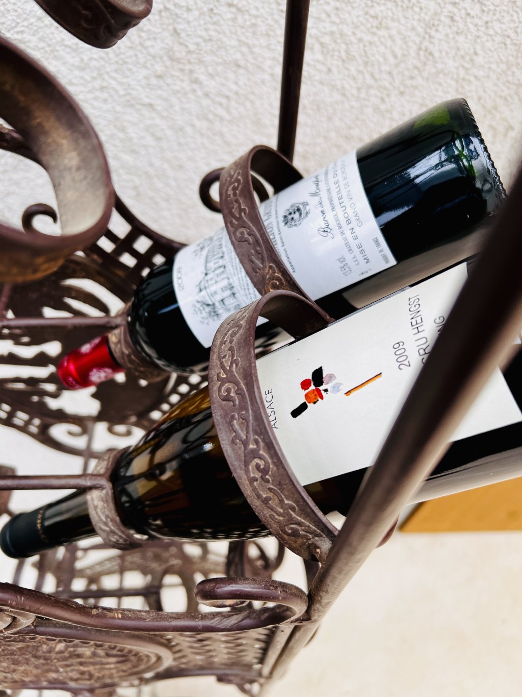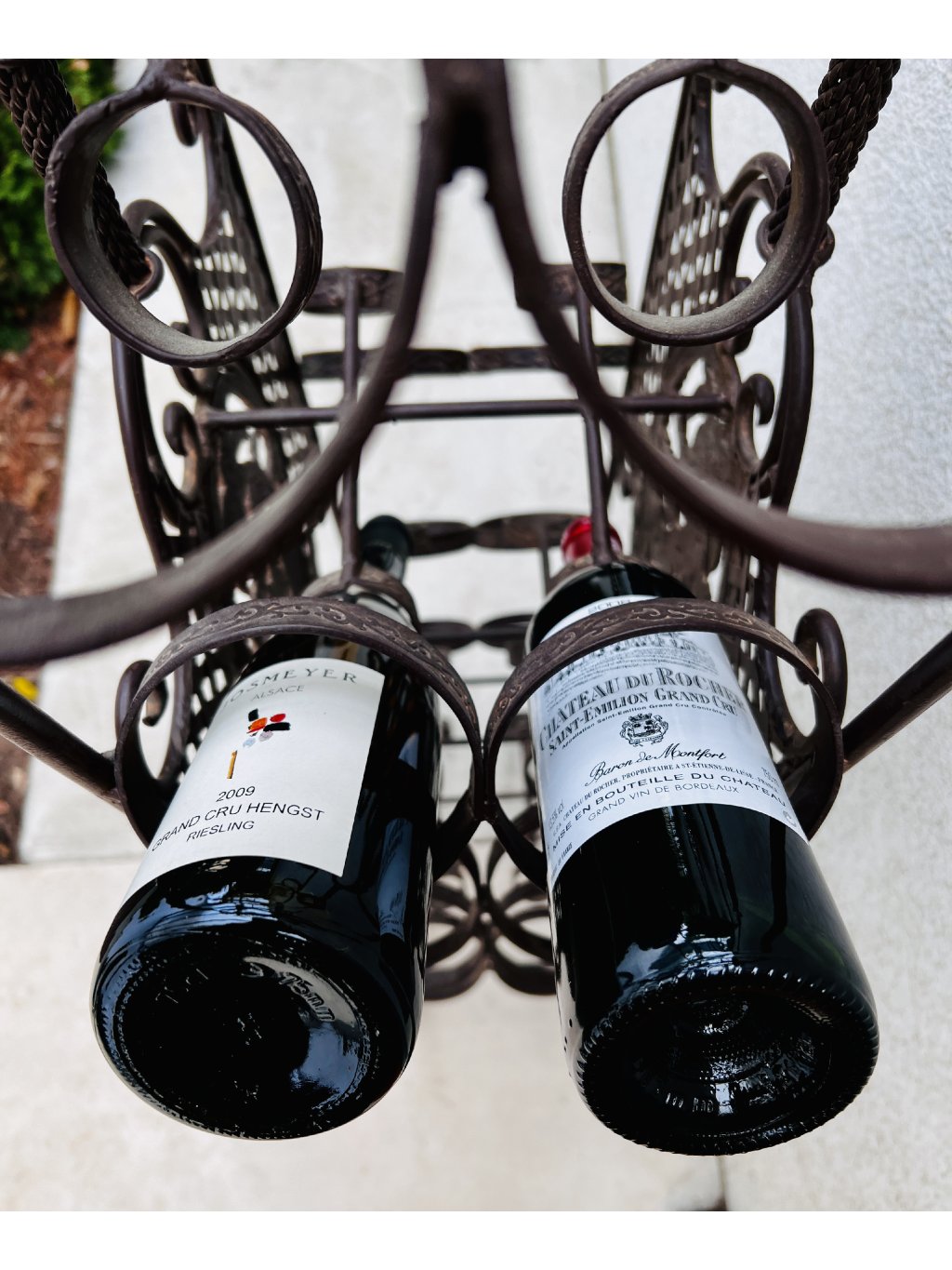 Jedinečný ručně dělaný kovový stojan na víno, který může stát samostatně a pojme až 24 lahví vína. Stojan je pevný, robustní a váží cca 25 kg, je zdobený neuvěřitelnými propracovanými detaily s motivy palem. Originální a strojem nenapodobitelná ruční práce.