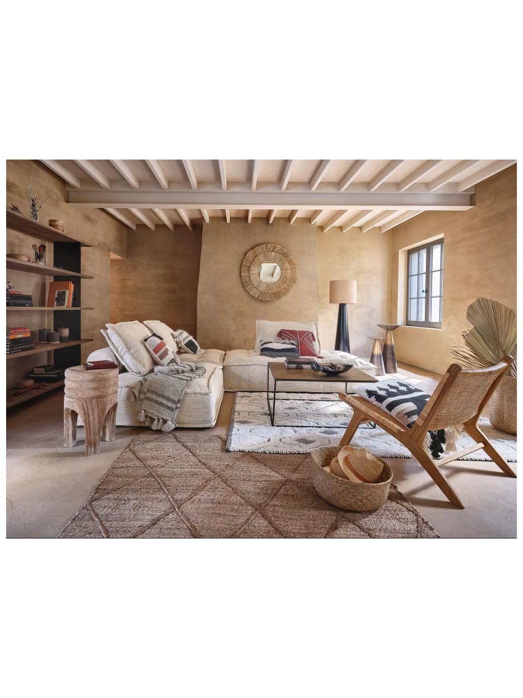 Objevte kouzlo přírodních materiálů v moderním designu! Toto originální křeslo je ručně vyrobené z udržitelného masivního teakového dřeva v přírodním odstínu.