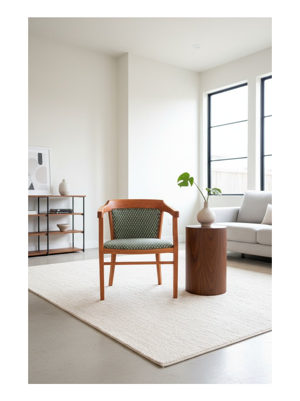 Díky svým proporcím je křeslo velmi univerzální – může sloužit jako křeslo k pracovnímu stolu, stejně jako elegantní sezení ke kulatému stolku ze stejné kolekce.