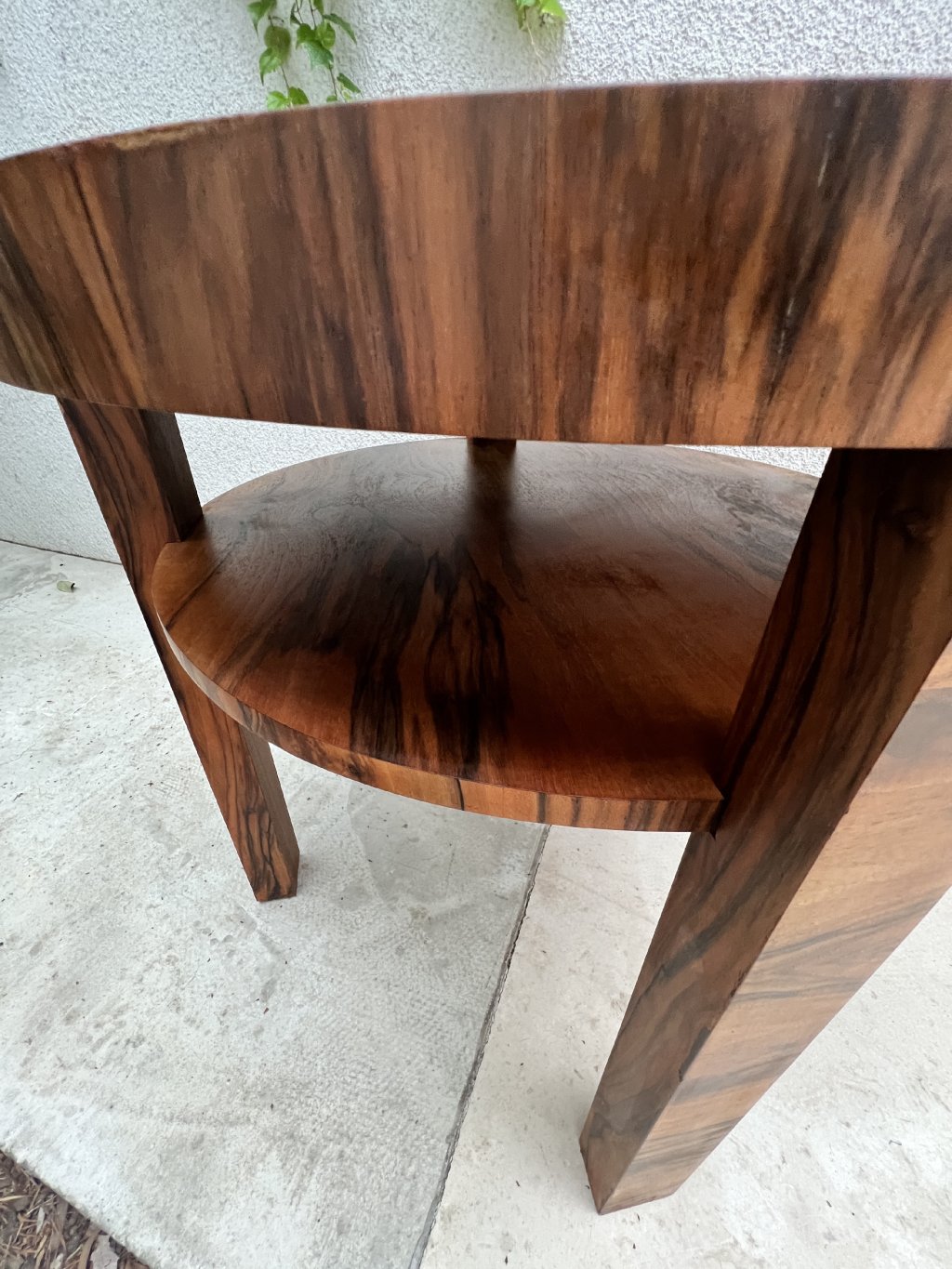 Konferenční či odkládací stolek Art Deco (30. léta) s úžasnou kresbou ořechové dýhy (makassar).