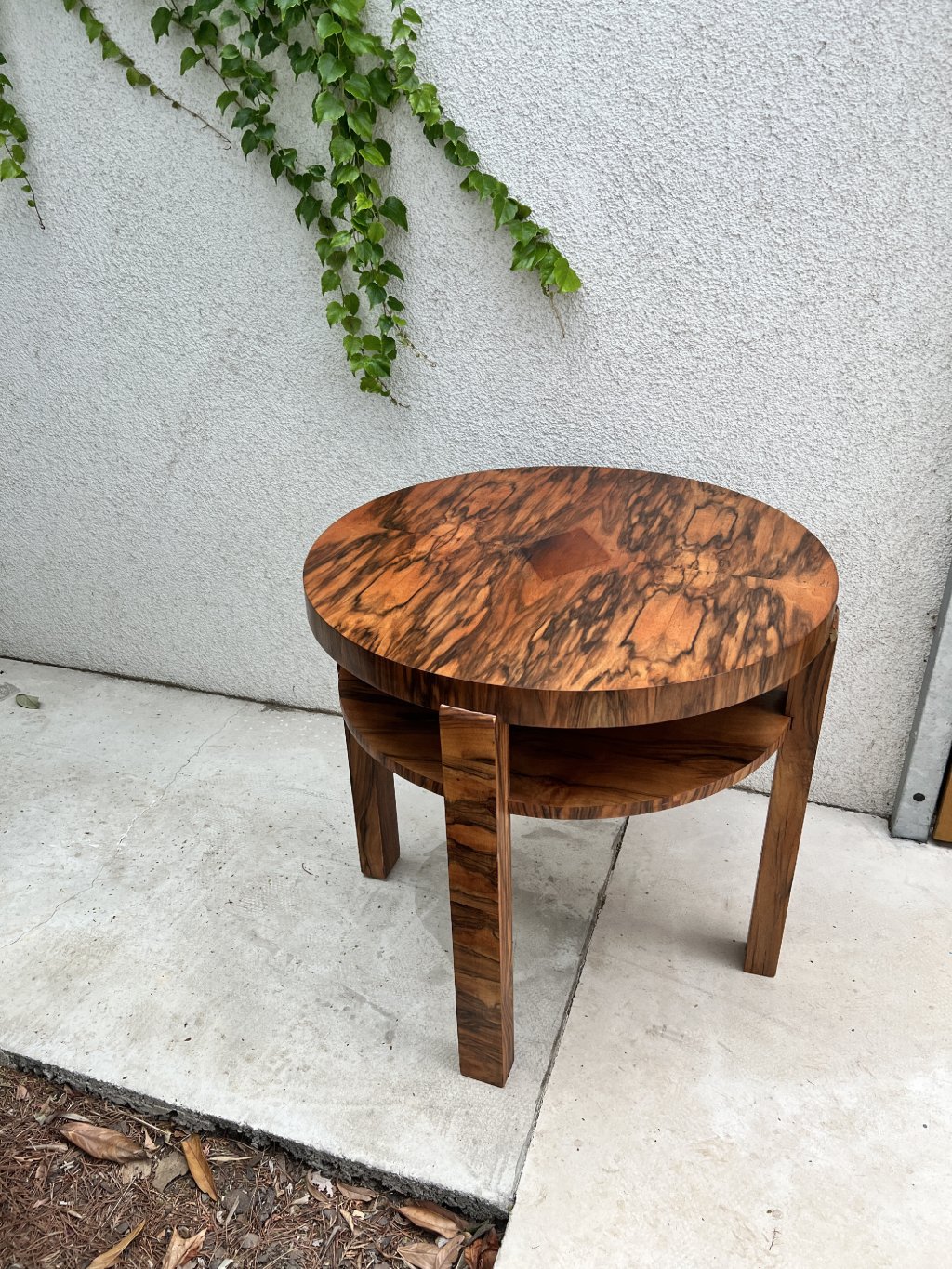 Art Deco Round Side Table with Macassar Veneer
